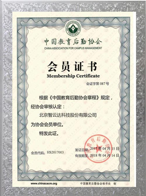 中國(guó)教育后勤協(xié)會(huì)會(huì)員證書