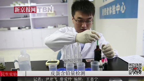 為此新京報記者特邀北京智云達(dá)科技有限公司(中國農(nóng)大食品科學(xué)與營養(yǎng)工程學(xué)院食品安全快速檢測研究中心所在地)技術(shù)工程師于勇通過現(xiàn)場實驗,共同為消費者解答心中的疑慮,在食品安全快速檢測網(wǎng)消費者體驗中心對皮蛋中的