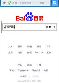 只要您在移動(dòng)站點(diǎn),如手機(jī),平板電腦等瀏覽器里打開百度搜索,在搜索框中輸入“@智云達(dá)”,然后點(diǎn)擊百度一下,就能直達(dá)我們的輕應(yīng)用(LAPP),即直接進(jìn)入我們公司的手機(jī)應(yīng)用。