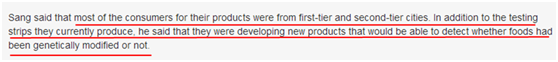 “在過去的一年里,食品安全快速檢測產品已經被越來越多的人使用”,桑總介紹說,“大多數人因為無法支付第三方檢測平臺和專業(yè)實驗室的高額費用,轉而使用此類方法。目前使用這些快檢產品的消費者大多來自一線和二線城市,我們一直不斷研發(fā)新產品,目前正在研發(fā)能夠檢測轉基因的產品。”