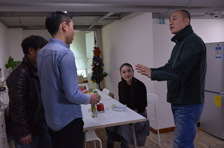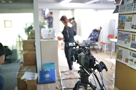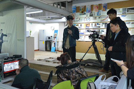視頻拍攝現(xiàn)場,工作人員分工明確,機械調(diào)試、場景布置、演員妝容已全部準備完畢。大家在輕松愉悅的環(huán)境氛圍下拍攝,不時互說想法,時而突發(fā)靈感動作改進,拍攝現(xiàn)場氣氛活躍。