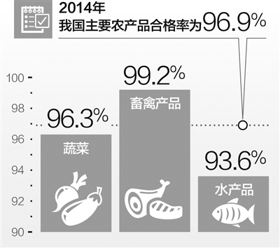 據(jù)介紹,2014年,農(nóng)業(yè)部組織開展了4次農(nóng)產(chǎn)品質(zhì)量安全例行監(jiān)測(cè),共監(jiān)測(cè)全國(guó)31個(gè)省(區(qū)、市)151個(gè)大中城市5大類產(chǎn)品117個(gè)品種94項(xiàng)指標(biāo),抽檢樣品43924個(gè),總體合格率為96.9%。其中,蔬菜、畜禽產(chǎn)品和水產(chǎn)品監(jiān)測(cè)合格率分別為96.3%、99.2%和93.6%,水果、茶葉合格率分別為96.8%和94.8%,農(nóng)產(chǎn)品質(zhì)量安全水平保持穩(wěn)定。