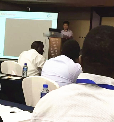 洽談會,首先是加納灌溉發(fā)展局副主任哈蒙弗朗西斯丹宣講加納在節(jié)能減排的現狀。