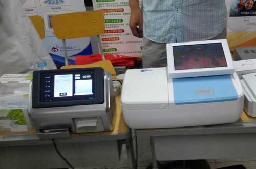 北京智云達新產(chǎn)品膠體金讀卡儀(左)農(nóng)藥殘留速測儀(右)