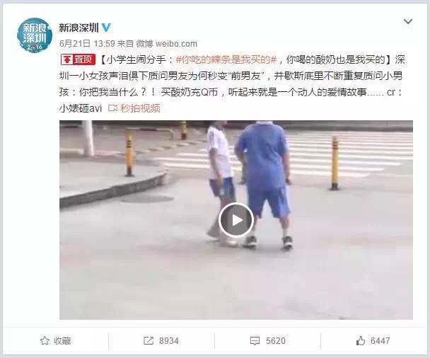 聽說前幾天辣條君因為兩個小學生的分手事件又火了一把,大概事件如下: