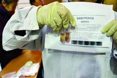 2016年12月14日9:00, 北京智云達(dá)與法制晚報(bào)聯(lián)手走進(jìn)朝陽區(qū)農(nóng)光里中社區(qū)居委會(huì),與社區(qū)20余位居民一起實(shí)驗(yàn)檢測(cè)饅頭中明礬的含量。