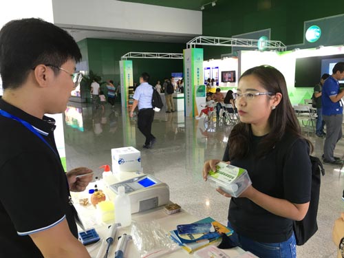 外國(guó)友人現(xiàn)場(chǎng)咨詢智云達(dá)食品安全快速檢測(cè)產(chǎn)品