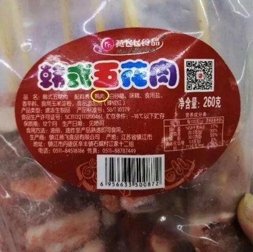從事餐飲行業的人是如何看待的?在寧波一家知名飯店從業30多年的大廚林軍認為,如果包裝袋上只是寫“五花肉”,那由鴨肉制成也是有可能的。所謂五花肉,通常來說指的是豬肉,但若從形態表述,只要肥肉與瘦肉之間均勻分層達到四五層以上,就可以這么稱呼。