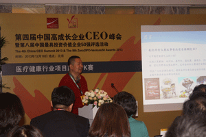 2013年12月18日,北京智云達(dá)科技有限公司出席第四屆中國(guó)高成長(zhǎng)企業(yè)CEO峰會(huì)。桑總攜帶公司成熟的商業(yè)計(jì)劃參加醫(yī)療健康專場(chǎng)“行業(yè)成長(zhǎng)力之星”項(xiàng)目路演PK賽。