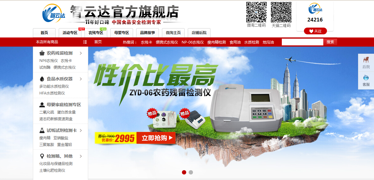 智云達食品檢測天貓ZYD旗艦店成立兩周年以來,在激烈的網(wǎng)購市場競爭中脫穎而出,網(wǎng)購快檢產(chǎn)品銷量遙遙領先。