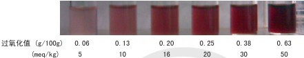 利用食用油氧化所生成的過氧化物與檢測試劑發(fā)生顯色反應,食用油過氧化值越高,顏色越深。