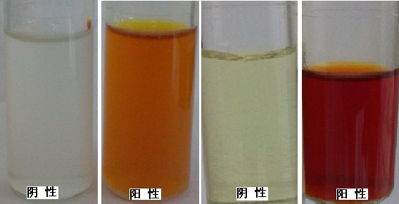 如溶液變?yōu)槌燃t色至棕紅色,則判定為陽(yáng)性;其他顏色判為陰性。