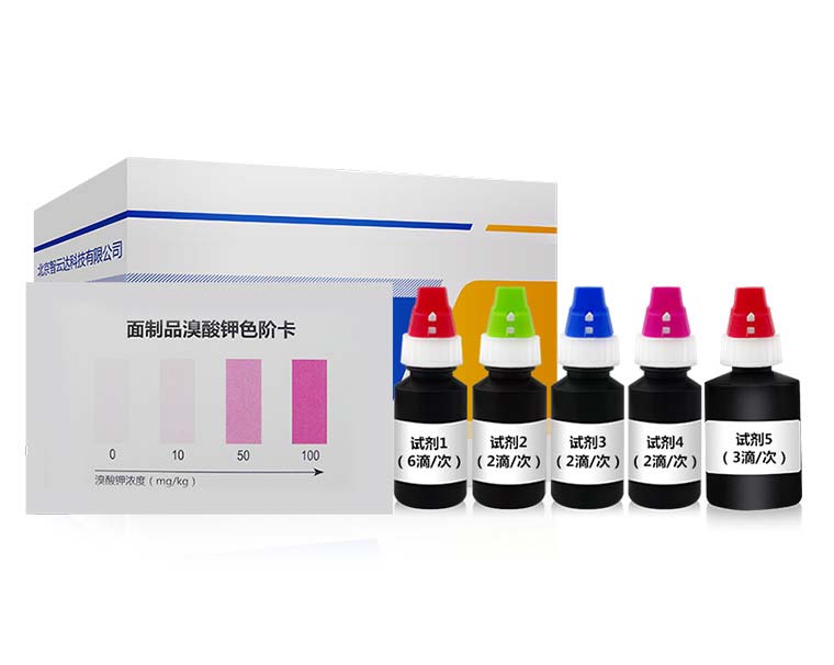 1.將顯色管與面粉中溴酸鉀快速檢測色階卡進行比較, 即可檢出被測樣品中溴酸鉀的含量。