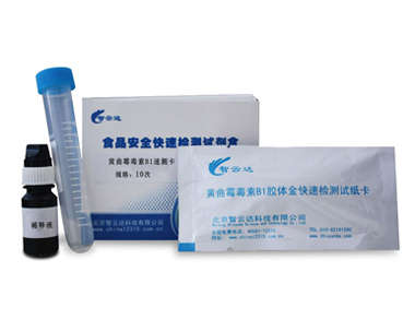 黃曲霉毒素 B1(Aflatoxin B1 簡寫為 AFB1)是目前已知的化學(xué)物質(zhì)中致癌性最強(qiáng)的一種。黃曲霉毒素 B1 對(duì)人和若干動(dòng)物具有強(qiáng)烈的毒性,其毒性作用主要是對(duì)肝臟的損害。國家質(zhì)檢總局規(guī)定黃曲霉毒素 B1 是大部分食品的必檢項(xiàng)目之一。本品的檢測(cè)靈敏度為 5ng/ml(5ppb)。