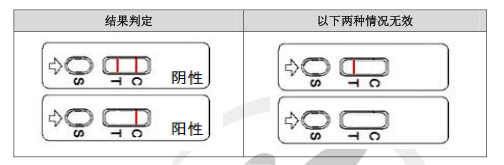 4.結(jié)果應(yīng)在3~5分鐘讀取,10分鐘后結(jié)果無效。根據(jù)示意圖判定結(jié)果。