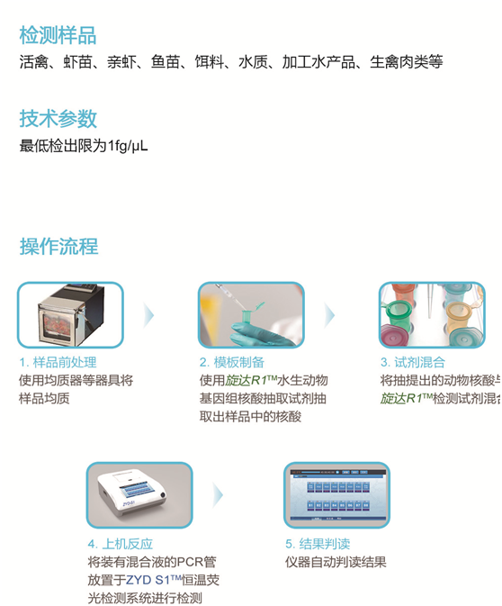 旋達(dá)R1?動(dòng)物病害檢測(cè)系列試劑,基于恒溫?cái)U(kuò)增技術(shù)平臺(tái),以特別設(shè)計(jì)的2對(duì)特異性識(shí)別檢測(cè)靶標(biāo)的獨(dú)有基因序列,能快速、準(zhǔn)確地鑒定檢測(cè)出樣品中是否含有特定病原體,可對(duì)動(dòng)物病害進(jìn)行有效監(jiān)控,有力地防止疫病的爆發(fā),并且可應(yīng)用于出入境對(duì)外來有害生物疫情疫病監(jiān)測(cè)。
