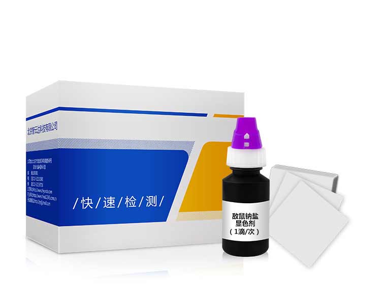 取待測樣品溶液 1 滴于試紙上,等試紙上的溶液稍干后,在原點上加 1 滴敵鼠顯色劑,如果出現(xiàn)磚紅色斑點為強陽性反應(yīng),如果出現(xiàn)紅色環(huán)狀為弱陽性反應(yīng)。