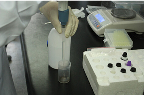 1、 用天平稱取一定量的雙七茶樣品,加入8毫升的農(nóng)殘緩沖試劑提取,提取時間2分鐘。