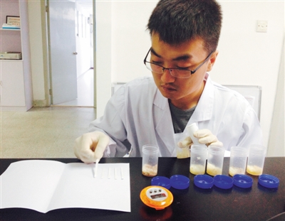 結(jié)果顯示6種樣品的試紙顏色都沒(méi)有發(fā)生變化。“沒(méi)有變色,說(shuō)明這些泡椒鳳爪里都不含違禁的雙氧水”,于勇說(shuō),如果試紙變成藍(lán)綠色,才有可能加了雙氧水,試紙顏色越深,含量越高。
