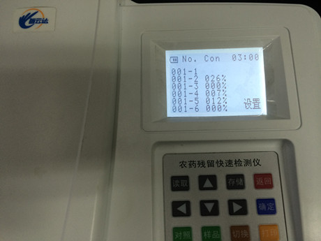 實(shí)驗(yàn)結(jié)果:抑制率分別為26%、0%、7%、12%、和0%,農(nóng)殘未超標(biāo)。判定依據(jù),抑制率≥50%時(shí),農(nóng)殘超標(biāo)。