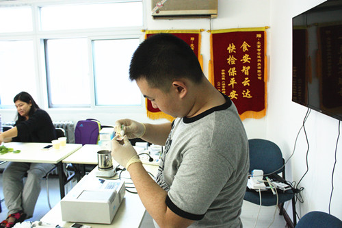 下午由河北農(nóng)業(yè)大學(xué)食品質(zhì)量與安全專業(yè)于鳴訓(xùn)講師帶領(lǐng)學(xué)員自己動手操作檢測了油菜中的農(nóng)藥殘留,牛奶中三聚氰胺檢測、枸杞二氧化硫檢測、亞硝酸鹽檢測,地溝油檢測等。學(xué)員熱情度很高,課程結(jié)束了還意猶未盡,在輕松的學(xué)習(xí)氛圍中進一步了解快檢,應(yīng)用快檢。