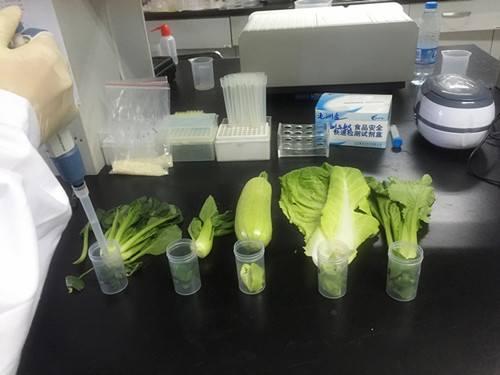 陳女士用于自己的大棚,全綠色無(wú)污染,但是她還是覺得做個(gè)檢測(cè)會(huì)比較放心,因此她將大棚中現(xiàn)產(chǎn)的幾種蔬菜送到中心進(jìn)行農(nóng)殘檢測(cè)。