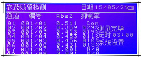 酶抑制法:酶具有單一性和高效性,當(dāng)農(nóng)藥存在時(shí),將會(huì)抑制酶的活性,使得酶與底物反應(yīng)減慢,酶與底物反應(yīng)將會(huì)生成一種有色物質(zhì),當(dāng)酶被抑制的時(shí)候,有色物質(zhì)生成減少,通過(guò)對(duì)比樣本和對(duì)照可以在分光光度計(jì)中得到顏色變化比對(duì),因此知道農(nóng)藥是否殘留。