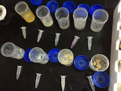 由于我們的咸鴨蛋還有沒熟的,因此取樣針對固液采取不同取樣方法,對于液體采用移液器進(jìn)行取樣,對固態(tài)的直接稱重,為了保證取樣有代表性,我們都選取蛋黃和蛋清都采樣。