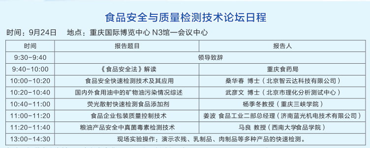 快檢培訓(xùn)班已在北京舉辦九期,第十期與往常不同,在重慶。您一定很好奇,為什么這次培訓(xùn)班安排在重慶,如果您關(guān)注我們的網(wǎng)站及微博、微信,您會(huì)發(fā)現(xiàn),智云達(dá)受邀參加由中國(guó)儀器儀表學(xué)會(huì)牽頭的四家機(jī)械行業(yè)專(zhuān)業(yè)組織2015年9月22日-25聯(lián)合在重慶國(guó)際展覽中心共同舉辦“中國(guó)(重慶)智能制造技術(shù)裝備博覽會(huì)”(簡(jiǎn)稱(chēng)智博會(huì))。為了讓客戶(hù)和學(xué)員有參與高質(zhì)量技術(shù)論壇,學(xué)習(xí)更多除快檢常識(shí)外知識(shí)的機(jī)會(huì),本次培訓(xùn)班特改為參加食品安全與質(zhì)量檢測(cè)技術(shù)論壇。