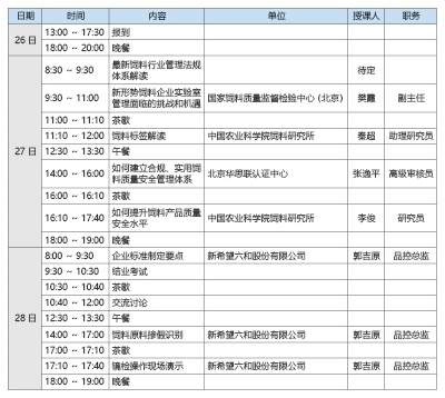 為幫助企業(yè)深入學(xué)習(xí)理解飼料法律法規(guī),了解飼料行業(yè)監(jiān)督檢查情況,使飼料行業(yè)從業(yè)者規(guī)范飼料生產(chǎn)、經(jīng)營行為,強化管理,滿足飼料企業(yè)對新法規(guī)和檢測實驗室管理的需求,解決目前飼料企業(yè)工作中遇到的疑難問題,北京智云達科技股份有限公司將于2018 年12 月26 日~28 日在北京舉辦“飼料行業(yè)法律法規(guī)培訓(xùn)班”。現(xiàn)將有關(guān)事宜通知如下: