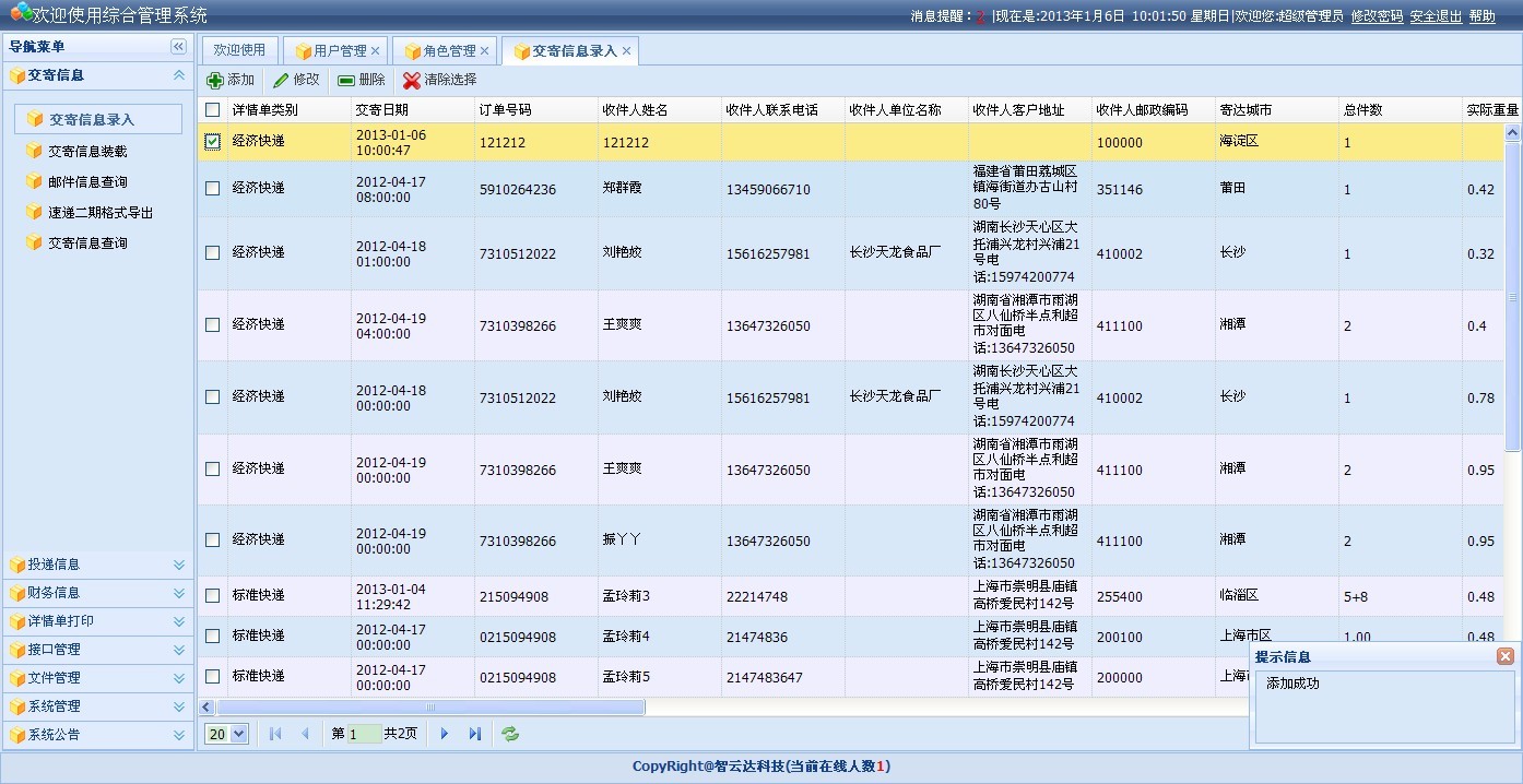 上海郵政速遞綜合管理平臺(tái)—詳情單打印
